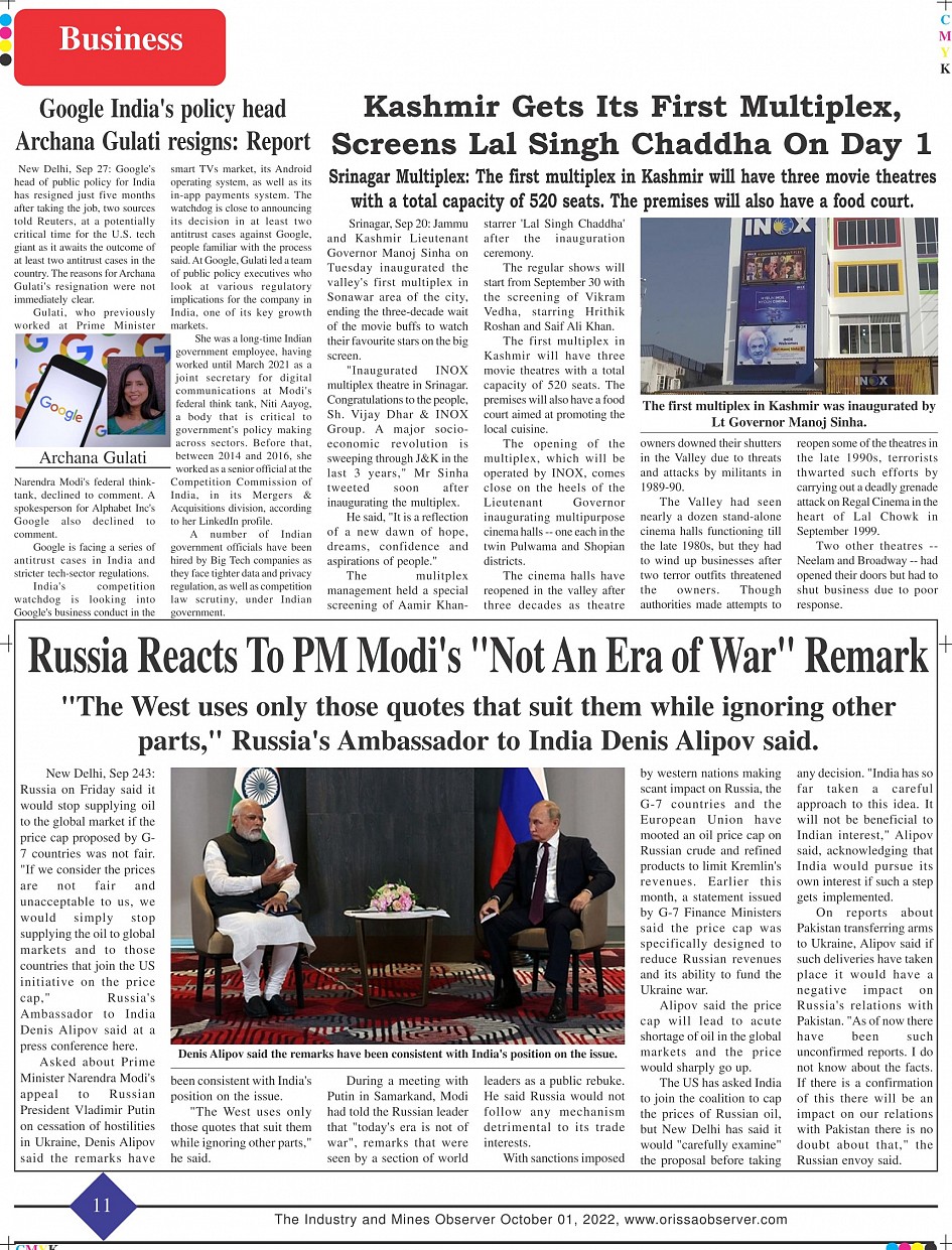The Industry and Mines Observer - 1 Oct 2022 Page: 11 << First << 11 >> Last >> Page 1Page 2Page 3Page 4Page 5Page 6Page 7Page 8Page 9Page 10Page 11Page 12Page 13Page 14Page 15 × The Industry and Mines Observer - 1 Oct 2022 Page-1Page-2Page-3Page-4Page-5Page-6Page-7Page-8Page-9Page-10Page-11Page-12Page-13Page-14Page-16 << First << 11 >> Last >> Page-1Page-2Page-3Page-4Page-5Page-6Page-7Page-8Page-9Page-10Page-11Page-12Page-13Page-14Page-16 Page-11